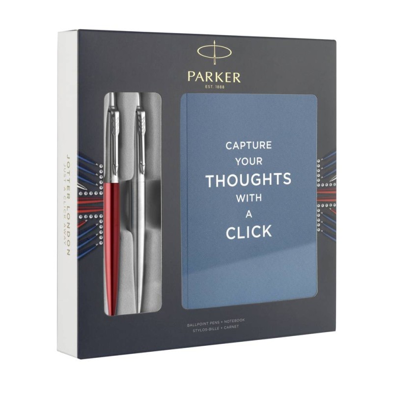 Parker σετ δώρου το οποίο περιλαμβάνει δύο Στυλό Ballpen, το Jotter Kensington Red και το Jotter Stainless Steel CT και σημειωματάριο.