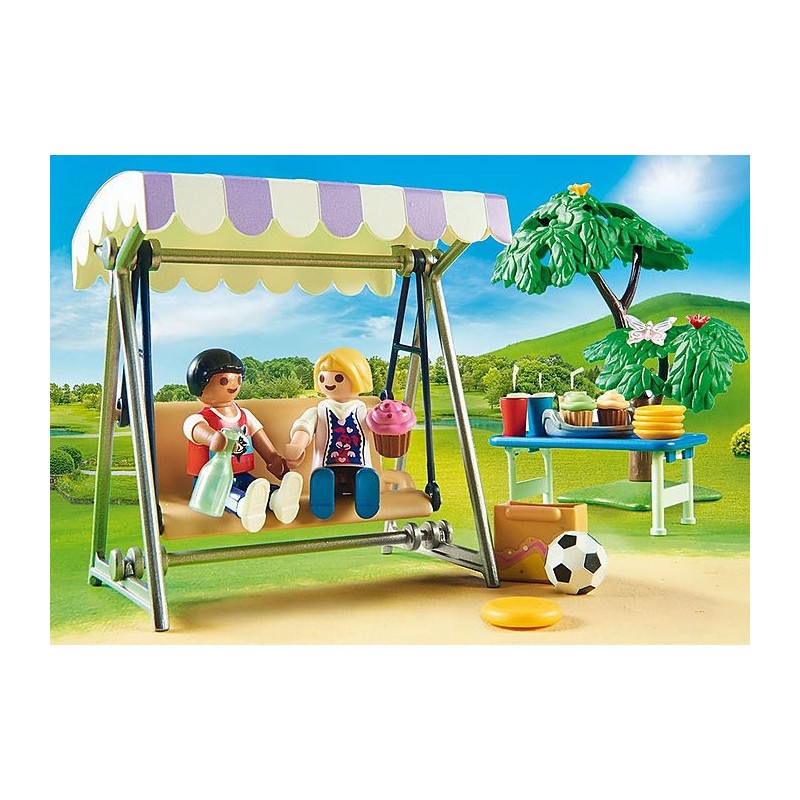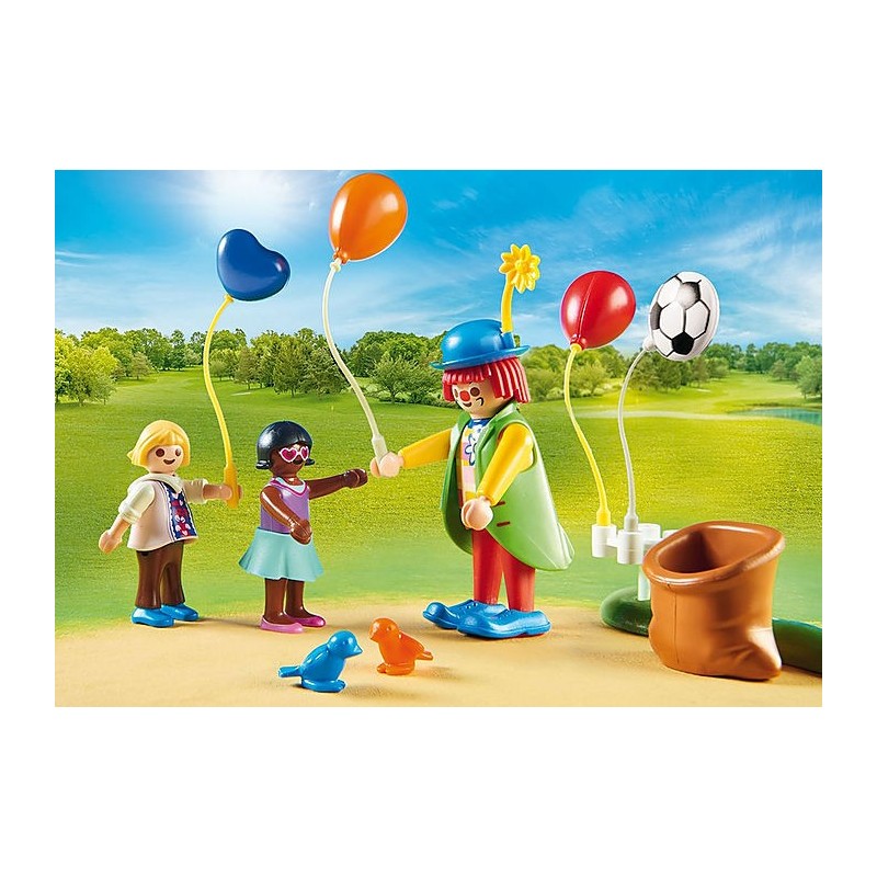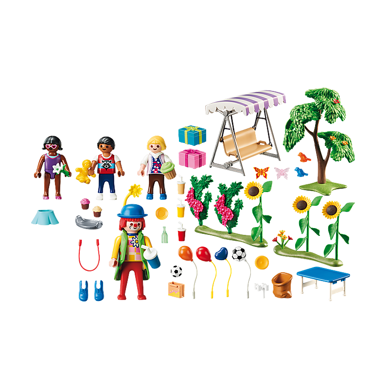 Τα παιδιά διασκεδάζουν με τον κλόουν και κάνουν σχοινάκι στο πάρτι γενεθλίων. Μπορούν να ξεκουραστούν στην κούνια. Με πολλά αξεσουάρ.