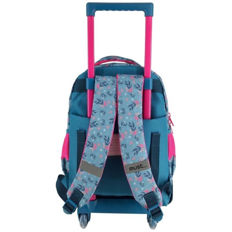 – Ενισχυμένοι, ανακλαστικοί ιμάντες μετατρέπουν το σχολικό τρόλεϊ σε τσάντα πλάτης και εξασφαλίζουν το σταθερό κράτημα, τη σωστή κατανομή του βάρους και την προστασία της σπονδυλικής στήλης των μαθητών